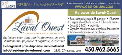 Résidence pour personnes âgées retraités aînés Laval-Ouest